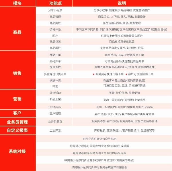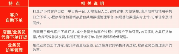 精誠導購(gòu)通(tōng)小(xiǎo)程序是(shì)面向中小(xiǎo)型零售、批發、貿易企業(yè)而打造的(de)專屬微(wēi)信小(xiǎ o)程序在線訂貨商城(chéng),系統可(kě)全面展示商品、快(kuài)速引流客戶,提升內(nèi)外(wài)部工( gōng)作(zuò)協同效率。讓企業(yè)告别傳統低(dī)效的(de)訂貨方式及內(nèi)部管理(lǐ)流程,在互聯網平台上(shàng₽)搭建快(kuài)速訂貨下(xià)單,分(fēn)銷管理(lǐ)等新型營銷模式。線上(shàng)移動下(xià)單,線下(xià)實時(shí)發貨,随時(shí)查詢新品、促銷π、折扣等信息實時(shí)推送,實現(xiàn)線上(shàng)線下(xià)一(yī)體(tǐ)化(hu↔à)運營,加快(kuài)供應鏈高(gāo)效運轉,提高(gāo)企業(yè)競争力,幫助企業(yè)實現(xiàn)業(yè)務增長(cháng)。