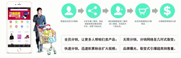 精誠導購(gòu)通(tōng)小(xiǎo)程序分(fēn)銷模塊以總部為(wèi)布控,不(bù)僅發動公司的(de)員(yuán)工(gōng)、客戶發展下(x÷ià)線,而且每個(gè)會(huì)員(yuán)輕松開(kāi)店(diàn),實現(xiàn)全員(yuán)分(fēn)銷的(de)裂變式網絡銷售模式。幫助企業(yè)打造多(duō)級一(yī)體(tǐ)化(huà)微(wēi)信分(fēn)銷平台,基于微(wēi)信分(fēn)享的(de)快(ku<ài)速傳播,輕松帶領成千上(shàng)萬的(de)微(wēi)信用(yòng)戶一(yī)起為(wèi)您銷售商品。π導購(gòu)通(tōng)商城(chéng)中的(de)每一(yī)個(gè)會(huì)員(yuán)都(dōu)是(shì)推廣員(yuán),輕松實現(xiàn)為(wèi)您主₩動推廣商品,從(cóng)而獲得(de)相(xiàng)應的(de)分(fēn)銷提成。