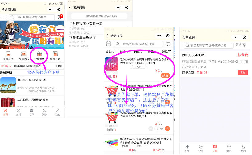 業(yè)務員(yuán)拜訪客戶,隻要(yào)拿(ná)出手機(jī)打開(kāi)精誠導購(gòu)通(tōng),就(jiù)可(kě)以在溝通(tōng)客情關→系的(de)同時(shí),快(kuài)速在線代客下(xià)單,公司後端實時(shí)收到(dào)訂單。拜訪結束後,用(yòng)​手機(jī)就(jiù)可(kě)以快(kuài)速做(zuò)好(hǎo)拜訪記錄。
